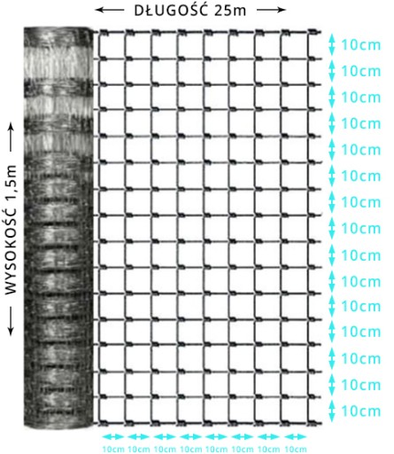 Podana cena jest ceną brutto za 1 rolkę = 25 m siatki leśnej
