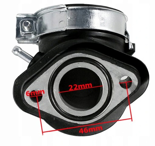 Króciec jest bardzo dobrze i solidnie wykonany zgodnie z fabrycznym standardem, jak i wymiarem. W zestawie znajdują się: wyjście na podciśnienie oraz opaska zaciskowa potrzebna do montażu gaźnika. Część jest oryginalna, więc pasuje bez jakichkolwiek modyfikacji. Dzięki sprawdzonej, wysokiej jakości zapewnia długą i bezproblemową eksploatację.