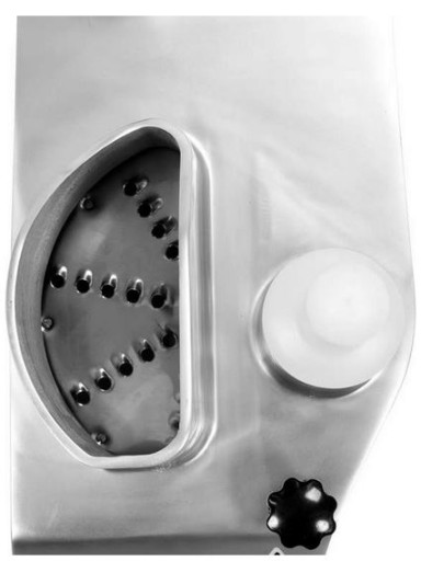 Załadunek warzyw możliwy jest poprzez główny, owalny otwór wsadowy o wymiarach 175x80mm z wygodnym popychaczem dźwigniowym lub poprzez mały otwór okrągły o średnicy 50mm z popychaczem ręcznym.