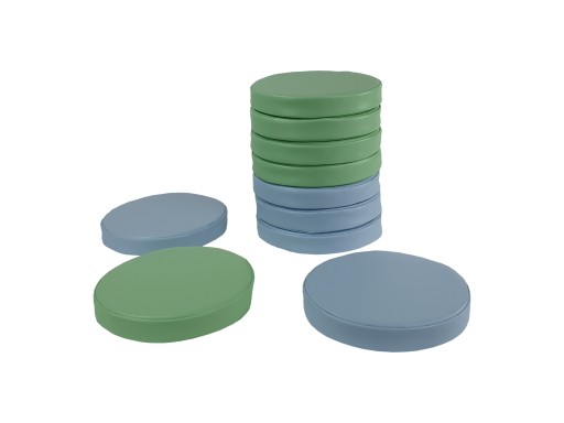 Zestaw klocków piankowych - Poduszki okrągłe to zestaw 10 wygodnych, kolorowych siedzisk podłogowych. Każda poduszka wypełniona jest pianką poliuretanową, która zapewnia wygodę siedzenia podczas zajęć, zabawy lub odpoczynku. Pokrowiec wykonany jest materiału najwyższej jakości z powłoką PCV przeznaczonego dla wyrobów medycznych, dzięki czemu jest bardzo łatwy w czyszczeniu oraz dezynfekcji. Produkt posiada certyfikację jako wyrób medyczny.