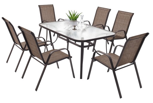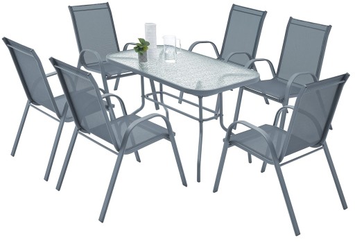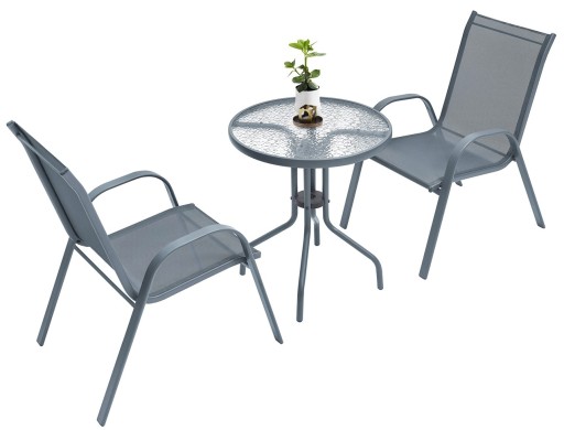 ZESTAW MEBLI OGRODOWYCH idealny do Twojego ogrodu. Stelaż został podwójnie lakierowany proszkowo, co idealnie przystosowuje ten produkt do zastosowania wewnątrz jak i na zewnątrz. Siedzisko krzesła oraz oparcie zostało zrobione z czarnego, elastycznego obicia tekstylnego tak, aby maksymalnie zwiększyć wygodę. Posiada ono dwa oparcia boczne. Użyte materiały nie wymagają częstej konserwacji, są odporne na warunki pogodowe i nie wymagają specjalnych środków do pielęgnacji. Nóżki są dodatkowo zaopatrzone w nakładki z tworzywa sztucznego. Stół posiada blat z czarnej hartowanej szyby o gr. 5 mm, z otworem na wstawienie parasola ogrodowego.