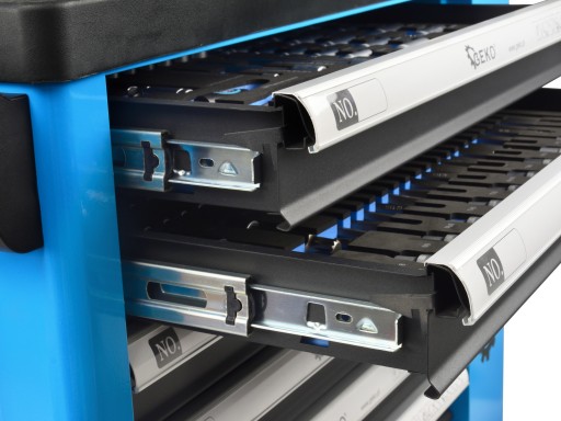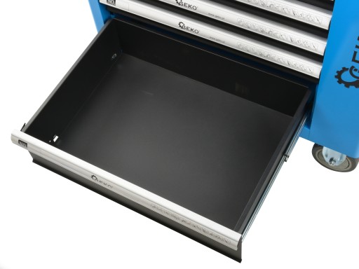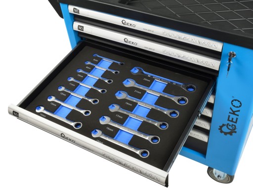 Wysokiej jakości szafka narzędziowa marki renomowanej marki GEKO z kompletnym 243el. wyposażeniem. Szafka posiada 7 praktycznych szuflad na narzędzia, zamykanych za pomocą kluczyka oraz dodatkowy również zamykany schowek boczny. Wszystkie elementy wchodzące w skład zestawu wykonane zostały z wytrzymałych i trwałych materiałów, co wyróżnia je spośród innych podobnych zestawów dostępnych na rynku.