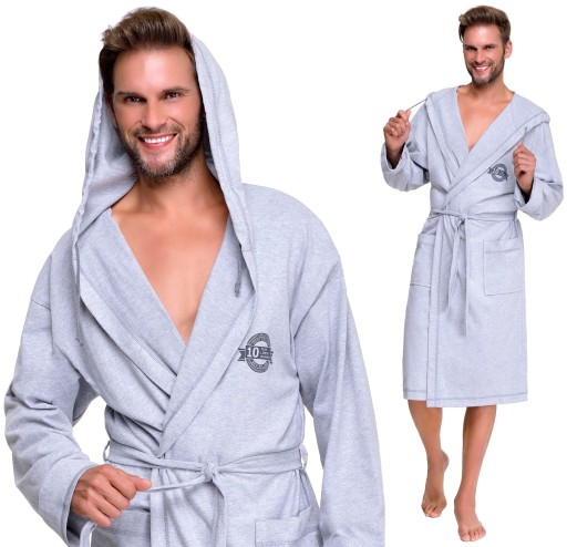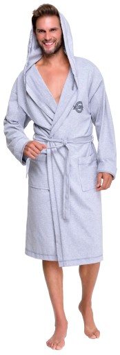 Towar bardzo starannie wykończony. Wykonany z bawełny która jest bardzo lekki a zarazem miła w dotyku. PRODUKT POLSKI Szlafrok męski z kapturem, wiązany w pasie, z miękkiej bawełny, na biodrach kieszenie zewnętrzne, na wysokości klatki piersiowej aplikacja. Miły i przyjemny w dotyku, gwarantuje komfort noszenia.