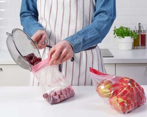 Można zamykać i otwierać bez końca, dzięki czemu torebki nadają się do wielokrotnego użytku.Woreczki ISTAD mają podwójne zamknięcie, które dłużej utrzymuje zawartość świeżą - a nawet pozwala szczelnie przechowywać płyny.