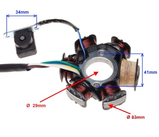 OPIS: KOMPLETNY ZAPŁON STATOR ISKROWNIK 6 CEWEK 5 PRZEWODÓW DO POPULARNYCH POJAZDÓW 4T Z SILNIKIEM 139 FMB 110cm3.