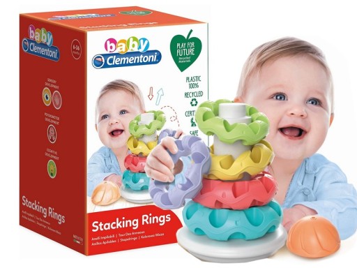 Piramidka z kółek rozwija zdolności manualne i zręcznościowe malucha, ćwiczy koncentrację i koordynację wzrokową.