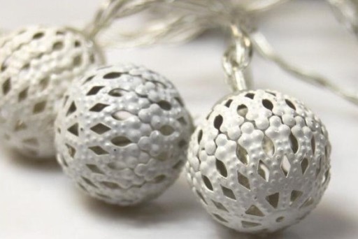 Dekoracyjny łańcuch lampek. Sprawiających wrażenie jakby ktoś w delikatnej porcelanie powycinał piękną koronkę.