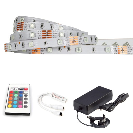 ZESTAW Taśma LED SMD 5050 RGB 30 IP20 5m ze sterownikiem oraz zasilaczem
