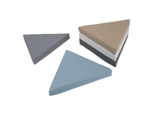 Zestaw klocków piankowych - Poduszki trójkątne to zestaw 5 wygodnych, kolorowych siedzisk podłogowych. Każda poduszka wypełniona jest pianką poliuretanową, która zapewnia wygodę siedzenia podczas zajęć, zabawy lub odpoczynku. Pokrowiec wykonany jest materiału najwyższej jakości z powłoką PCV przeznaczonego dla wyrobów medycznych, dzięki czemu jest bardzo łatwy w czyszczeniu oraz dezynfekcji. Produkt posiada certyfikację jako wyrób medyczny.