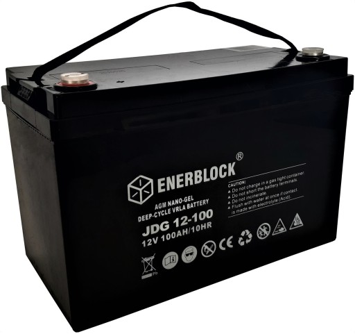 Akumulatory ENERBLOCK z serii JDG zostały wyprodukowane w hybrydowej technologii NanoGEL + AGM. Są bezobsługowe oraz szczelnie zamknięte (VRLA). Dzięki tej technologii w porównaniu do tradycyjnej technologii żelowej ładowanie przebiega o 30% szybciej, a zwiększona koncentracja energii pozwoli uzyskać większą pojemność (AH) przy mniejszym gabarycie oraz mniejszej wadze akumulatora. Akumulatory serii JDG są dedykowane do pracy cyklicznej w wózkach elektrycznych, łodziach, jachtach, kamperach, itp. oraz jako magazyn energii w instalacjach solarnych czy wiatrowych. Przewidywana żywotność serii JDG to900 cykli pracy przy maksymalnym rozładowaniu do poziomu 50%. Akumulatory serii JDG to również doskonałe rozwiązanie dla buforowej pracy jako awaryjne źródło energii w instalacjach typu UPS, alarmowych, ppoż, sprzęcie medycznym itp. Ich żywotność projektowana to 12-15 lat.