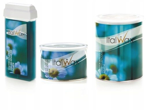 ItalWax Azulen- linia klasycznych, rozpuszczalnych w tłuszczach wosków w roli, do stosowania na ciepło, do depilacji dużych obszarów. Specjalna formuła wosków, charakteryzująca się wyjątkową przyczepnością. Odpowiednie do usuwania cienkich, jasnych włosów. Nakładane w cienkiej warstwie zapewniają skuteczną depilację. Temperatura topnienia wosku to 40'C.