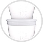 W komplecie z laktatorami elektrycznymi EasyStart oraz manualnym EasyStart znajduje się adaptor, który pasuje do pojemników, dzięki niemu istnieje możliwość odciągania pokarmu bezpośrednio do pojemników.