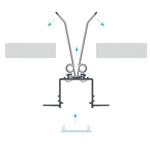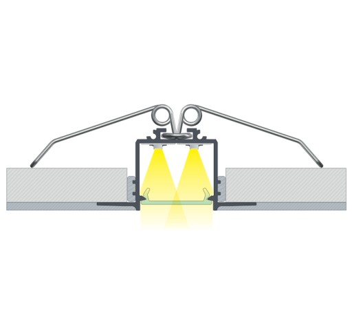 - wpuszczony pomiędzy płyty karton-gips, następnie zagipsowane ranty profilu,