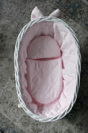 Kołyska wiklinowa dla lalek -- kolor biały -- obszycie oraz