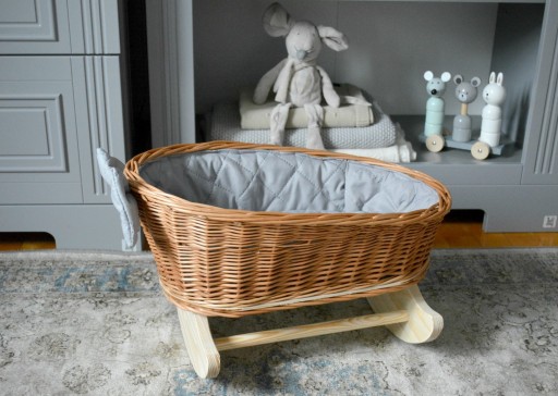 Kołyska wiklinowa dla lalek -- kolor naturalny -- obszycie oraz