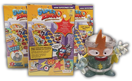 Opakowanie zawiera planszę do gry, karty mocy oraz kolorowe pionki z bohaterami, a także unikatową figurkę Super Zings Kid Kazoom. Gra dedykowana jest dla dzieci powyżej 4 roku życia. W rozgrywce może wziąć udział od 2 do 4 osób.