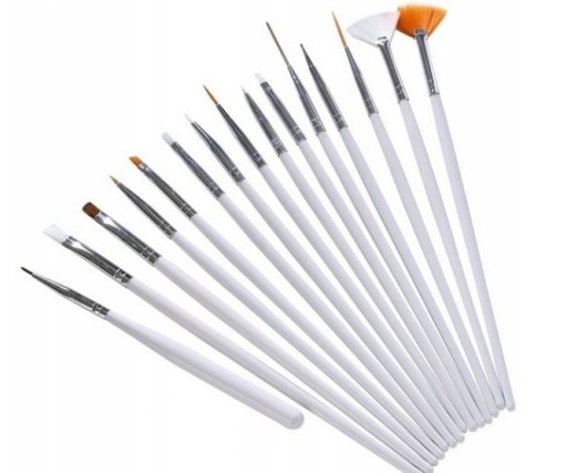 Zestaw składa się z 15 pędzelków przeznaczonych do wykonywania zdobień na paznokciach za pomocą lakierów, aplikacji ozdób oraz modelowania żelu i akrylu. Idealny dla profesjonalnych salonów kosmetycznych oraz do użytku domowego.