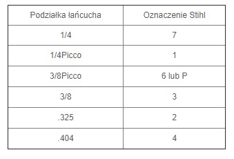 Podziałka łańcucha tnącego jest to odległość pomiędzy osiami pierwszego i trzeciego nitu dzielona przez dwa. STIHL produkuje piły łańcuchowe o podziałkach
