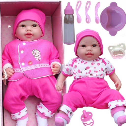 - Lalka ma rozpromienioną, słodką minkę i duże oczka z długimi rzęsami jak prawdziwy bobasek. Została wykonana z wytrzymałych solidnych materiałów. Tułów miękki, w części dolnej dodatkowo wypełniony specjalnym groszkiem, który jest stosowany głównie w lalkach wysokiej jakości.
