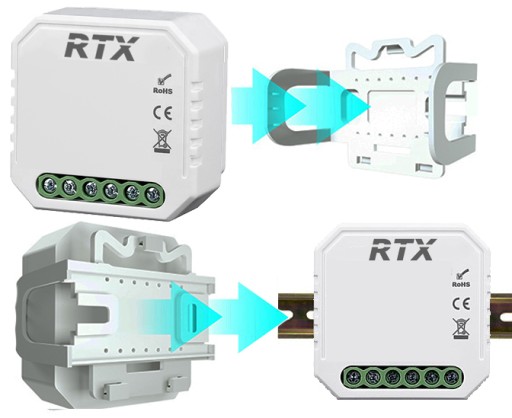 Małe wymiary pozwalają na montaż urządzenia w puszce ściennej, jednak zawarty w zestawie uchwyt umożliwia mocowanie na ścianie lub na szynie DIN