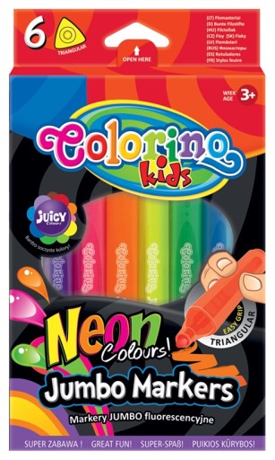 6 Jumbo flamastrów w neonowych kolorach.