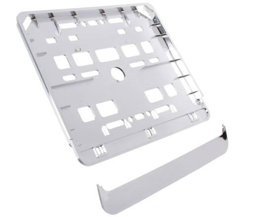 OPIS: RAMKA TABLICY REJESTRACYJNEJ DUŻA, WYKONANA Z TRWAŁEGO ELASTYCZNEGO TWORZYWA ABS IMITUJĄCA METAL, CHROMOWANA. DOLNA CZĘŚĆ POSIADA SPECJALNY ZATRZASK DZIĘKI CZEMU TABLICA DOSKONALE PRZYLEGA DO RAMKI. PASUJE NA WSZYSTKIE MOTOCYKLE (STANDARDOWE DUŻE REJESTRACJE )