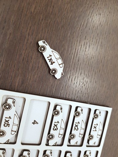 Drewniana tabliczka mnożenia wykonana z białej płyty Hdf. Cyferki oraz otwory wygrawerowane i wycięte laserowo.