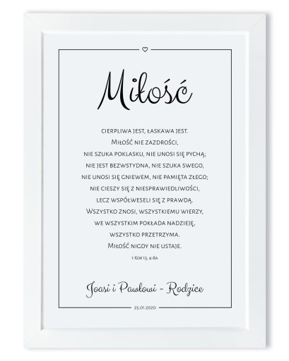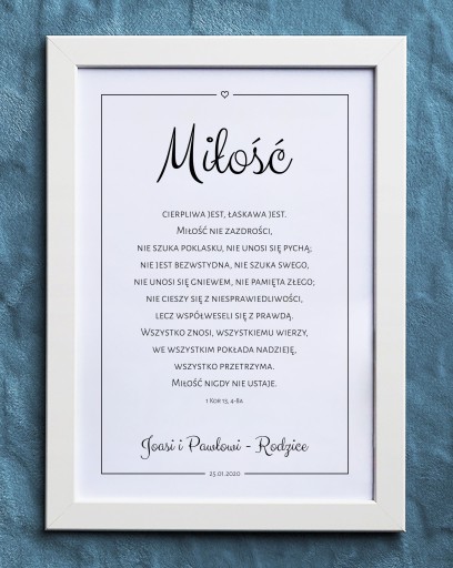 Fragment tej wspaniałej pieśni może być wyjątkowym prezentem z okazji ślubu lub ważnej rocznicy Twoich bliskich. Opatrzony indywidualnym podpisem będzie stanowił piękną oprawę wnętrza, przypominając jednocześnie o tym co najważniejsze.
