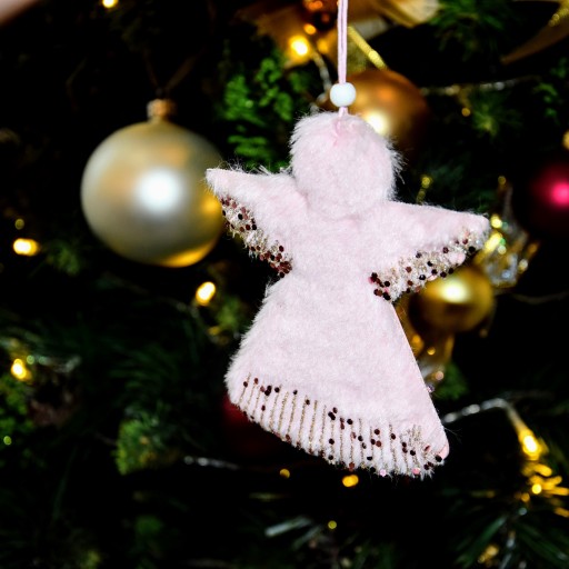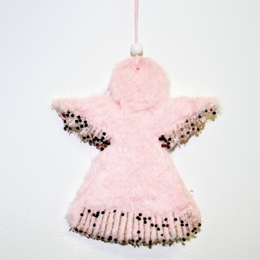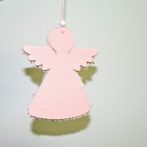 Różowa zawieszka w kształcie anioła stanowić będzie piękną ozdobę choinkową, jak również całoroczną ozdobę pokoju małej Księżniczki.