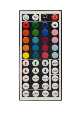6 przycisków systemu "DIY": manualne ustawienie i zapisanie koloru świecenia, poprzez zwiększanie i zmniejszanie barwy każdego z kolorów RGB (czerwonego, zielonego, niebieskiego)