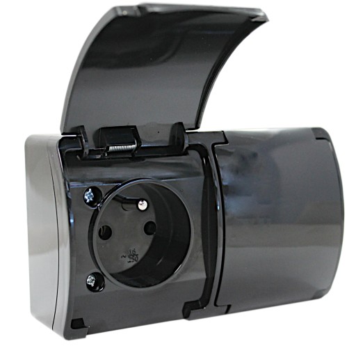 ГЕРМЕТИЧНАЯ ДВОЙНАЯ РОЗЕТКА НАВЕРХНОСТНОГО МОНТАЖА IP44 С ЗАЗЕМЛЕНИЕМ