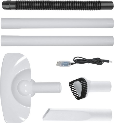 - Przewód USB z okrągłą wtyczką do odkurzacza, długość 120cm, 5V/1A (brak możliwości odkurzania w trakcie ładowania)