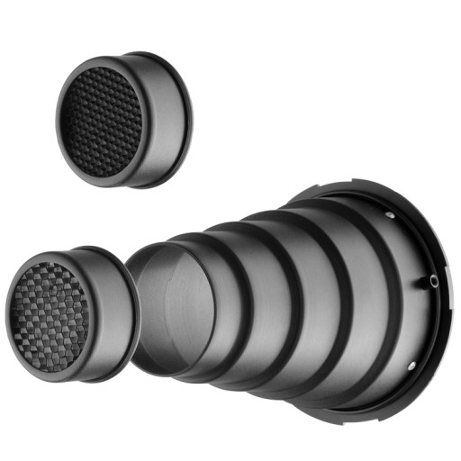 Falcon SGA-CS to strumienica przeznaczona do pracy z lampami reporterskimi. Aby zamocować ją na flashu wymagany jest adapter Falcon CA-SGU. Modyfikator pozwala uzyskać intensywne, punktowe światło z ostrymi krawędziami. Dołączone dwa pierścieie z plastrami miodu o różnych gradacjach pozwalają uzyskać silnie skoncentrowane światło w jednym punkcie sceny. Pierścienie oraz strumienica wykonane są z metalu.