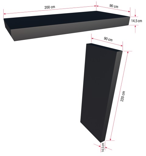 - Wymiary ściany bocznej: 14,5 x 90 x 220 cm