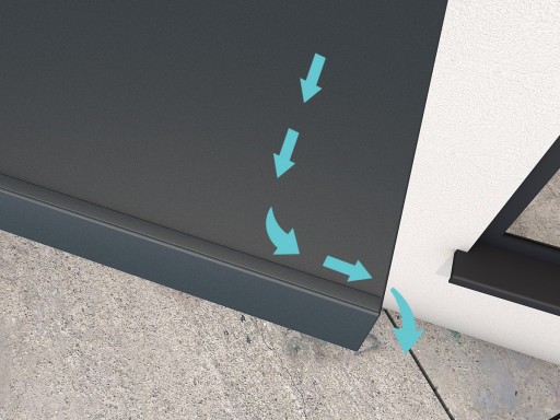 W modelach BS woda deszczowa jest zbierana przez przednią listwę i odprowadzana na bok. Panel boczny można zamontować po obu stronach.