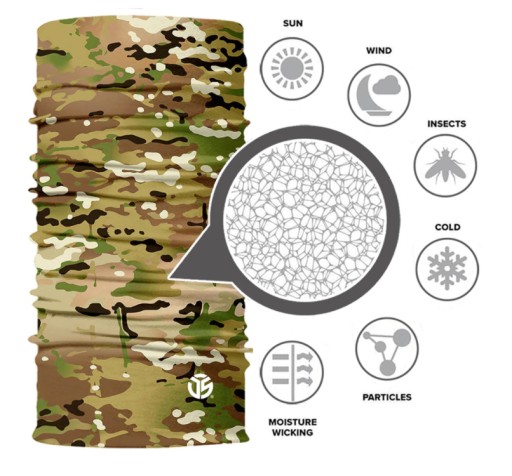 Co ważne materiał w produktach jest dodatkowo pokryty warstwo ochronną odporną na promienie UV (95%). Komin zapewnia uczucie suchości i chłodzenia ciała. Z uwagi na minimalne zachowanie ciepłoty, polecany jest do wykorzystania wiosna i latem.