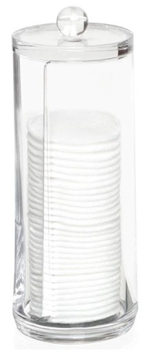 Pojemnik do przechowywania i organizacji płatków kosmetycznych. Dzięki pokrywce z elegancką kulką waciki przechowuje się w sposób higieniczny oraz estetyczny. Pojemnik przezroczysty wykonany z tworzywa sztucznego.