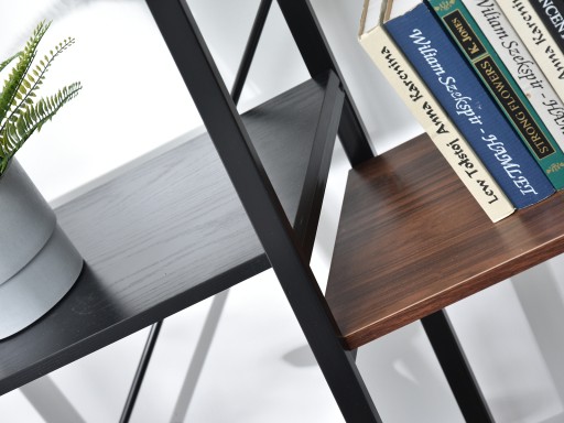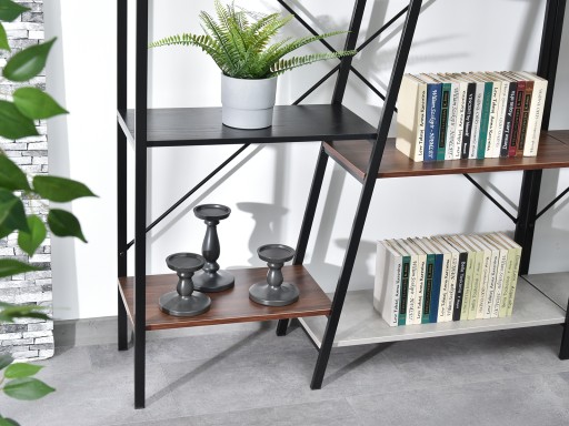 Oryginalny w formie i designie regał, który wspaniale podkreśli każde nowoczesne wnętrza. Ciekawa bryła oraz kolorystyka półek sprawiają, że model ten jest rewelacyjnym rozwiązaniem zarówno do industrialnej pracowni, jak również modernistycznego salonu. Polecany każdemu.