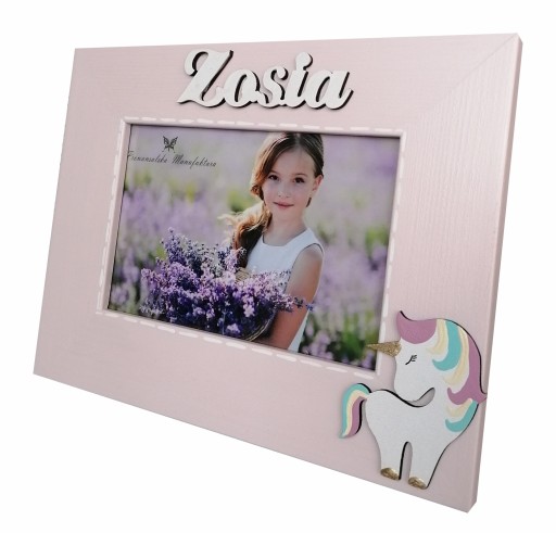 Drewniana, ręcznie malowana ramka na zdjęcia, w której pięknie prezentować będzie się zdjęcie Waszego dziecka.