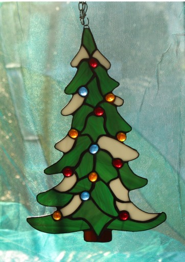 Choinka witraż drzewko z kolorowymi bombkami