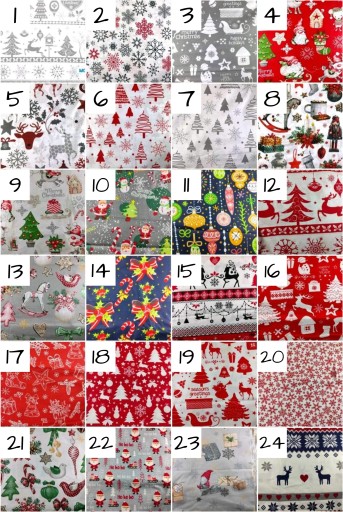 - numer wzoru materiału (BRAK numeru 9) ( góra skarpety w wersji zielonej lub czerwonej, w przypadku nie podania koloru szyjemy z czerwonego )