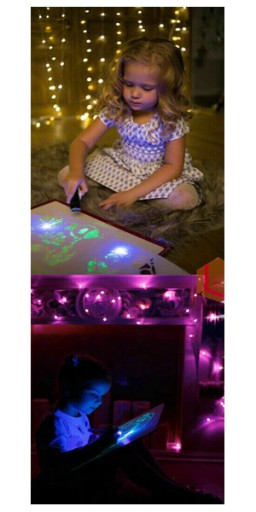Tablica świetlna to inteligentna, nowoczesna zabawka pozwalająca uruchomić wyobraźnię każdego dziecka już od najmłodszych lat. Nie potrzebujesz ołówka, markera czy pędzla, a jedynie światło!