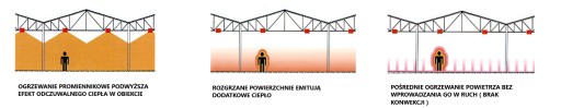 • Cała energia to grzanie ( promienniki nie emitują żadnym światłem ).