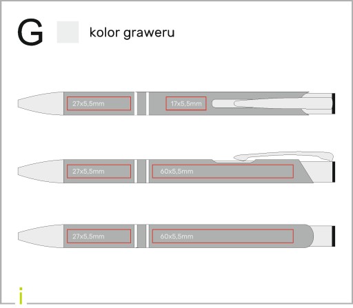 - Istnieje możliwość wygrawerowania do 4 powierzchni długopisu według indywidualnych ustaleń (wymiary powierzchni dostępne na zdjęciu powyżej),