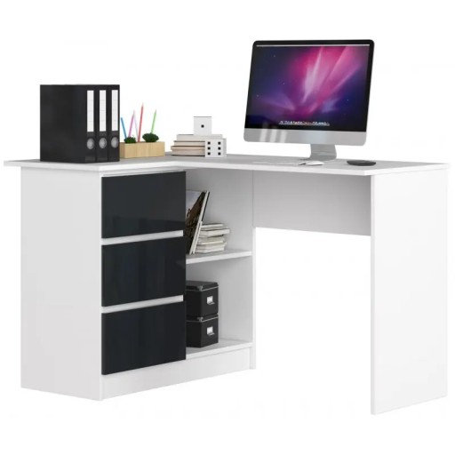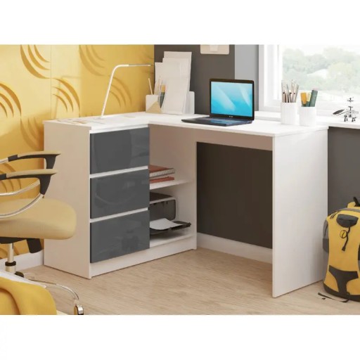 BIURKO NAROŻNE B16 124 cm LEWE 3 SZUFLADY BIAŁE / GRAFIT POŁYSK