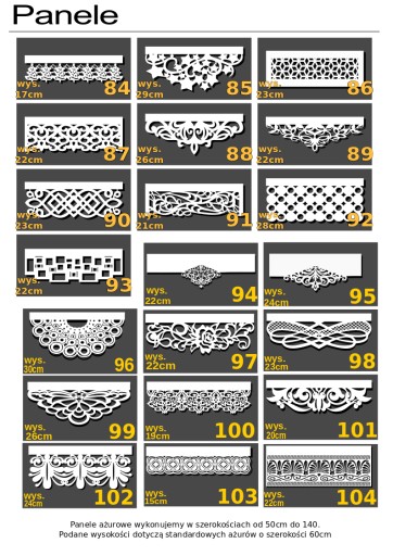 Jako wiodący producent oferujemy państwu doły ażurowe gotowe do wykańczania paneli okiennych. Panele wykonane są z wysokiej jakości materiału metodą laserową, która pozwala uzyskać idealną, niestrzępiącą się krawędź. Ażur składa się z 5 warstw z usztywnieniem, co gwarantuje idealne układanie się paneli. Nie daj się nabrać na panele wypalane z jednej grubej warstwy, nie będą miały takiej sztywności. Cała tajemnica tkwi w usztywnieniu ażuru. Do panelu dołączona jest plisa służąca do montażu na firance. Świetny dodatek do wykończenia ekranów, firan, rolet. Jest to produkt wysokiej jakości w który zaopatrują się sklepy firanowe.