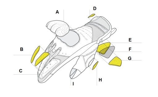 - mesh oraz skóra perforowana w strategicznych miejscach dostarczą bardzo wydajną cyrkulację powietrza, jednocześnie zapewniając odpowiednią ochronę dłoni