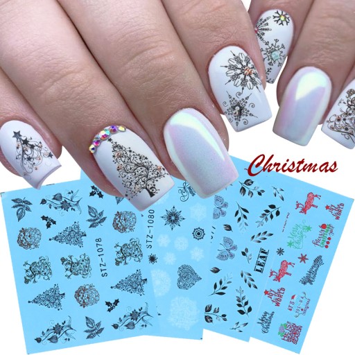 Серебряные наклейки для ногтей с изображением оленей H16