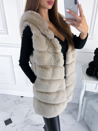 МЕХОВОЙ ЖИЛЕТ С КАПЮШОНОМ ПРЕМИУМ БЕЖЕВЫЙ
