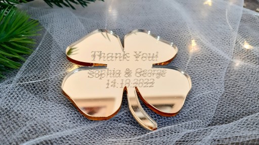 Koniczynkę można personalizować, wpiszemy dowolne imię, datę, specjalną dedykację. Poinformuj o tym sprzedającego.